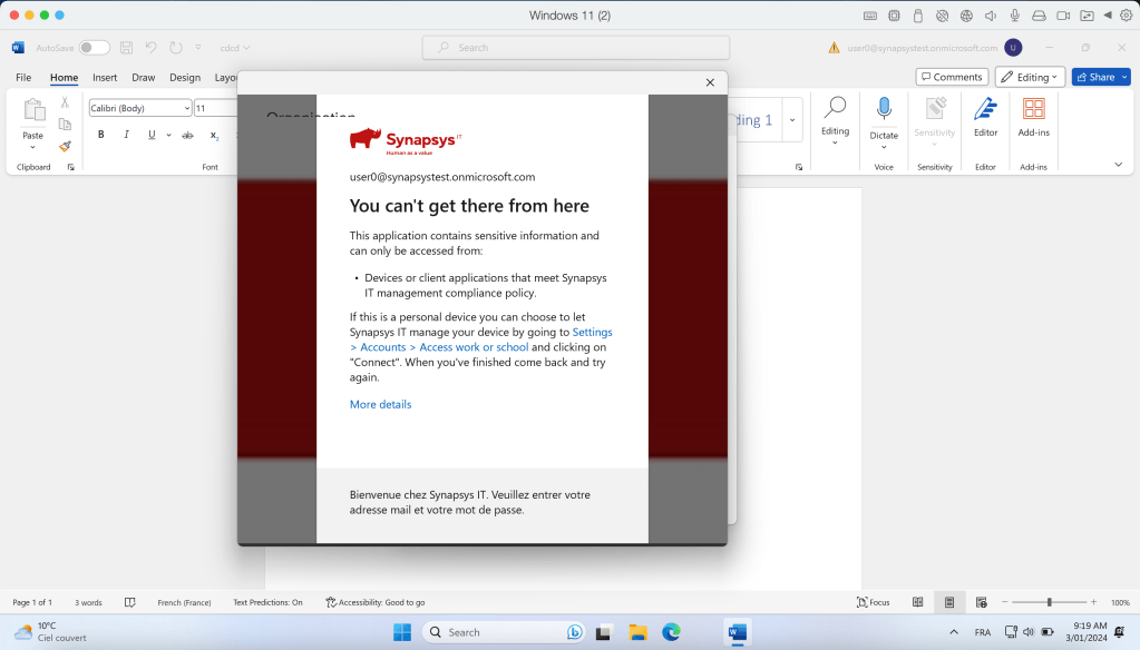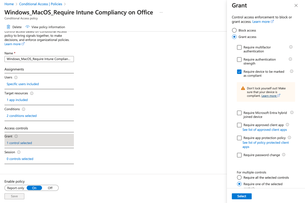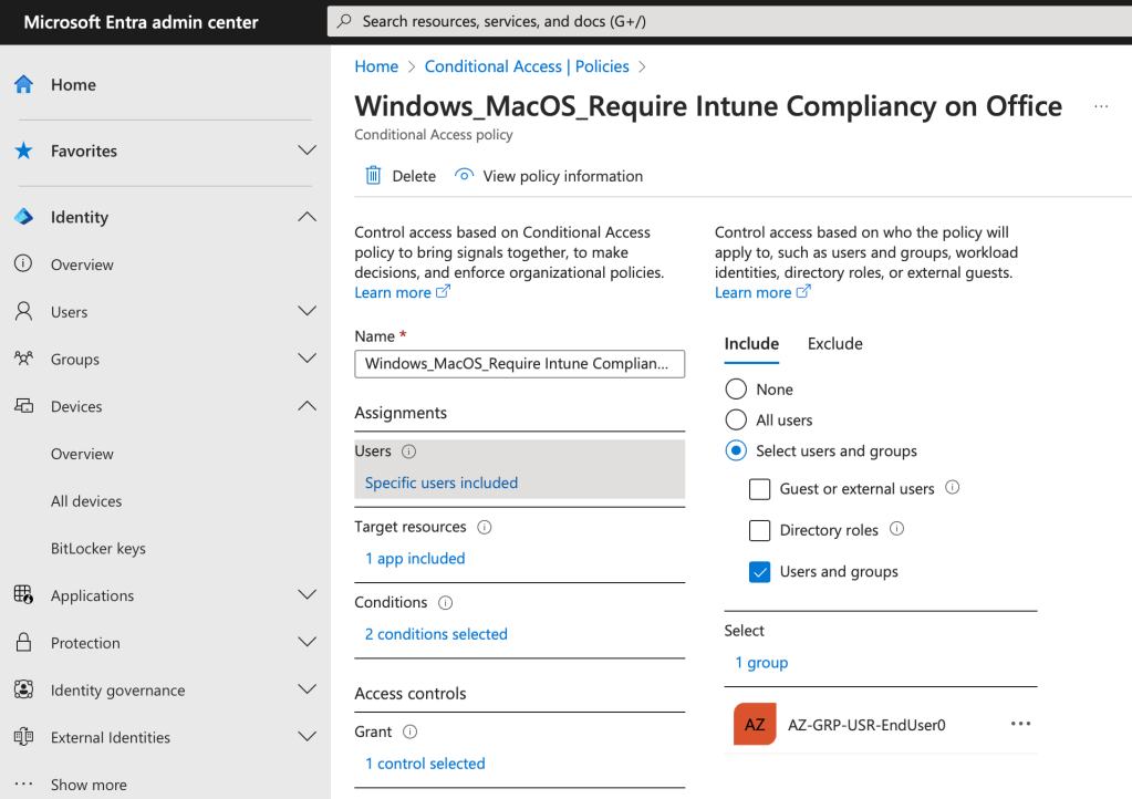 Here’s the idea : Your device needs to be enrolled in Intune and meet specific compliance rules you’ve set. This ensures that only managed devices can access company data, keeping it safe and preventing unauthorized use on personal devices.