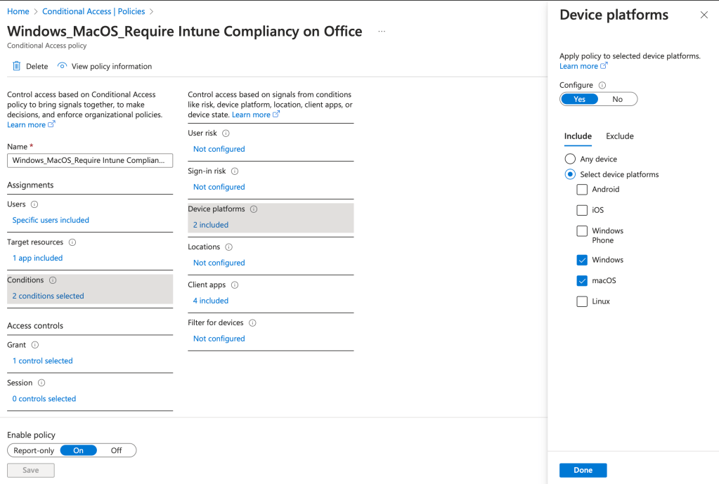 Once you’ve deployed the rule for Office, i suggest you to look into securing the Admin portals (Intune, Defender, etc). This way, only the managed devices can have access to your admin tools.