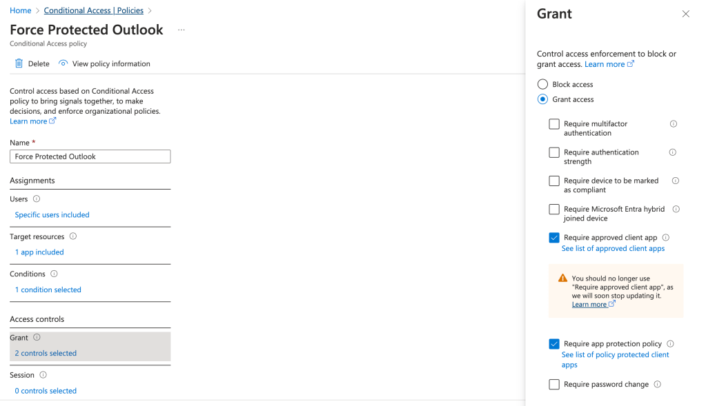 In 2026, the only possibility will be having a protected application. For new conditional access rule, only Require app protection policy is and will be necessary.