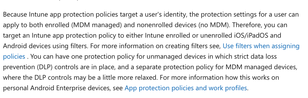What Microsoft says by writing this consideration is that MAM policy will, by default, impact enrolled devices and unenrolled devices.