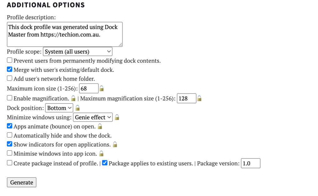 Do you allow your users to edit the dock ? Do you want want to override the existing Docks when .mobileconfig will apply ? Position, auto-hide, profile scope etc